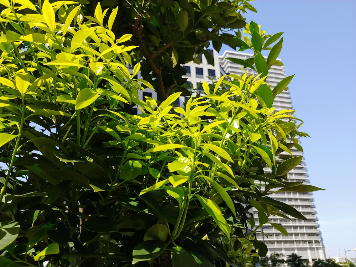 こちらはちょっと珍しい「御衣黄桜」。ヤナセ本社の近くで撮影。